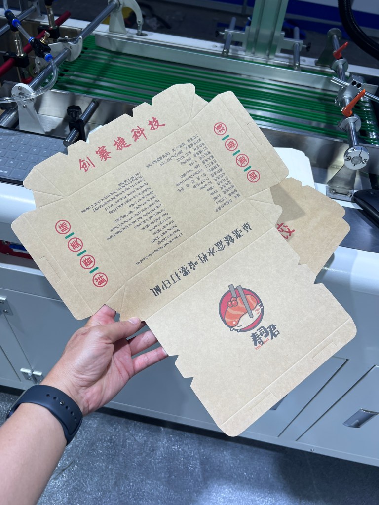 Digital takeaway boxes printing machines leverage advanced printing techniques, such as inkjet or UV printing, to directly transfer high-quality images and designs onto takeaway boxes. This eliminates the need for time-consuming manual processes or expensive custom tooling, enabling businesses to produce custom-branded packaging quickly and cost-effectively. Whether it’s a restaurant, a food delivery service, or a catering company, these machines offer a versatile solution to create eye-catching and unique designs that leave a lasting impression on customers.